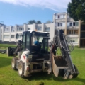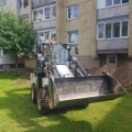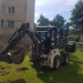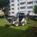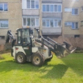 Mažai dirbęs traktoriukas, variklis KUBOTA Type : V2403-CR-T-EW03 Diesel Engine. Yra trys kaušai ir šakės. Plakto hidraulinė funkcija
