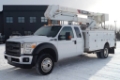 2013 Ford F550 XLT - 37ft Bucket Truck. 4WD. 6.8L V10 Triton. Gasoline. 5-Speed Automatic. 84" C/A. 186" WB. 4.88 Limited Slip Rear Axle Ratio. Engine Block Heater. Snow Plow Prep Package. PTO. Extended Cab. 3 Passenger. Oxford White Exterior. Gray Cloth Interior. Tow Hooks. DRW. 19,500 GVWR.