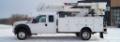 Upfit: 37ft Terex Hi-Ranger HR37M Single Man Bucket. Insulted. Articulating. Continuous Rotation. 37ft Platform Height. 42ft Working Height. Horizontal Reach 30ft. 350lb Capacity. Material Handler. 12ft BrandFX Fiberglass Utility Body. Hydraulic Outriggers. Receiver Hitch.