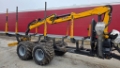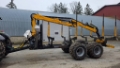The trailer is extendable and features hydraulic drive. It has worked approximately 500 hours. Tires: Nokian Forestking 710/40 R22.5. The crane has an 8.75m reach and operates via its own hydraulic pump from the tractor's PTO.
